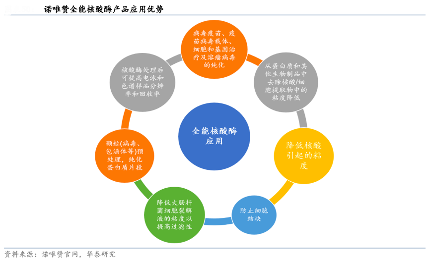 經(jīng)典案例:根據(jù)諾唯贊招股說(shuō)明書(shū)、華泰研究等綜合資訊表明,諾唯贊領(lǐng)先布局制藥工程酶,全能核酸酶可高效降解任何形式的核酸序列,被廣泛用于蛋白等生物制品中核酸的去除。諾唯贊開(kāi)發(fā)的 Universal Benzo Nuclease 全能核酸酶及配套核酸酶殘留檢驗(yàn)試劑盒,在解決生物制品核酸污染的同時(shí),為有效降低酶本身的殘留風(fēng)險(xiǎn)提供精確參考。2021年12月30日,諾唯贊全能核酸酶產(chǎn)品通過(guò)美國(guó)FDA DMF II類備案,獲得美國(guó)市場(chǎng)準(zhǔn)入資格。
