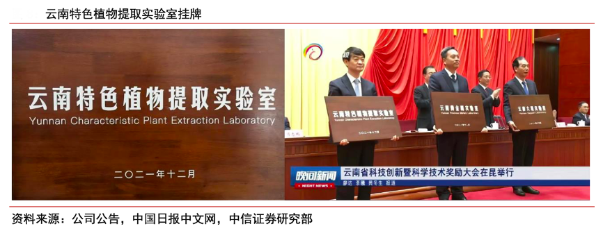 經(jīng)典案例:根據(jù)公司公告、中國日報中文網(wǎng)、中信證券研究部等綜合資訊表明,貝泰妮2021年末云南特色植物提取實(shí)驗(yàn)室正式授牌,其是經(jīng)云南省委、省政府批準(zhǔn)成立的 獨(dú)立法人實(shí)體新型研發(fā)機(jī)構(gòu),由公司的全資子公司云南云科牽頭承辦建設(shè)工作。實(shí)驗(yàn)室以云南特色植物作為研發(fā)發(fā)動機(jī),支撐未來云南千億特色植物產(chǎn)業(yè)發(fā)展。同時聚焦云南特色植物的功效性化妝品、功效性食品及藥品的研發(fā),有望在未來實(shí)現(xiàn)技術(shù)突破,為貝泰妮帶來新的增長曲線。