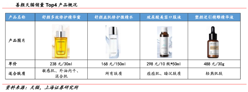經(jīng)典案例:根據(jù)天貓、上海證券研究所等綜合資訊表明,善顏?zhàn)鳛槟壳皣鴥?nèi)量膚定制最為成熟的品牌之一成立于2004 年。其以“東方女性肌膚大數(shù)據(jù)平臺(tái)”為基礎(chǔ),針對(duì)女性肌膚中出現(xiàn)的16類問題,研發(fā)生產(chǎn)了舒顏、潤顏、清顏、嬌顏、塑顏、亮顏6大系列產(chǎn)品。依托福瑞達(dá)實(shí)驗(yàn)室、山東藥學(xué)科學(xué)院的研發(fā)實(shí)力和全球化的原料供應(yīng)鏈體系,善顏成功成為國妝精準(zhǔn)護(hù)膚最成熟的品牌之一。