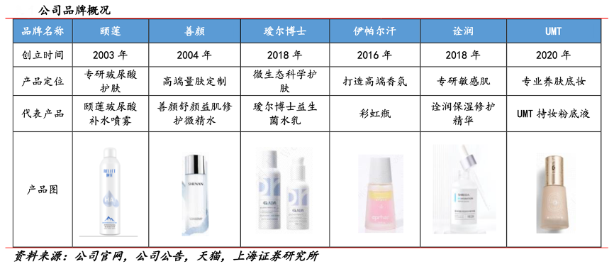 經(jīng)典案例:根據(jù)公司官網(wǎng)、公司公告、天貓、上海證券研究所等綜合資訊表明,福瑞達醫(yī)藥旗下化妝品業(yè)務核心品牌包括頤蓮、璦爾博士、伊帕爾汗、善 顏四個品牌,及善言、詮潤、UMT 等其他品牌,品牌涉及護膚、 香氛、彩妝等多個領域。頤蓮品牌主打玻尿酸護膚,璦爾博士品 牌聚焦皮膚微生態(tài)護膚科技,伊帕爾汗立足新疆原產(chǎn)地優(yōu)勢打造高端薰衣草生態(tài)產(chǎn)業(yè)鏈,善顏品牌通過大數(shù)據(jù)系統(tǒng)構(gòu)建精準護膚技術平臺。