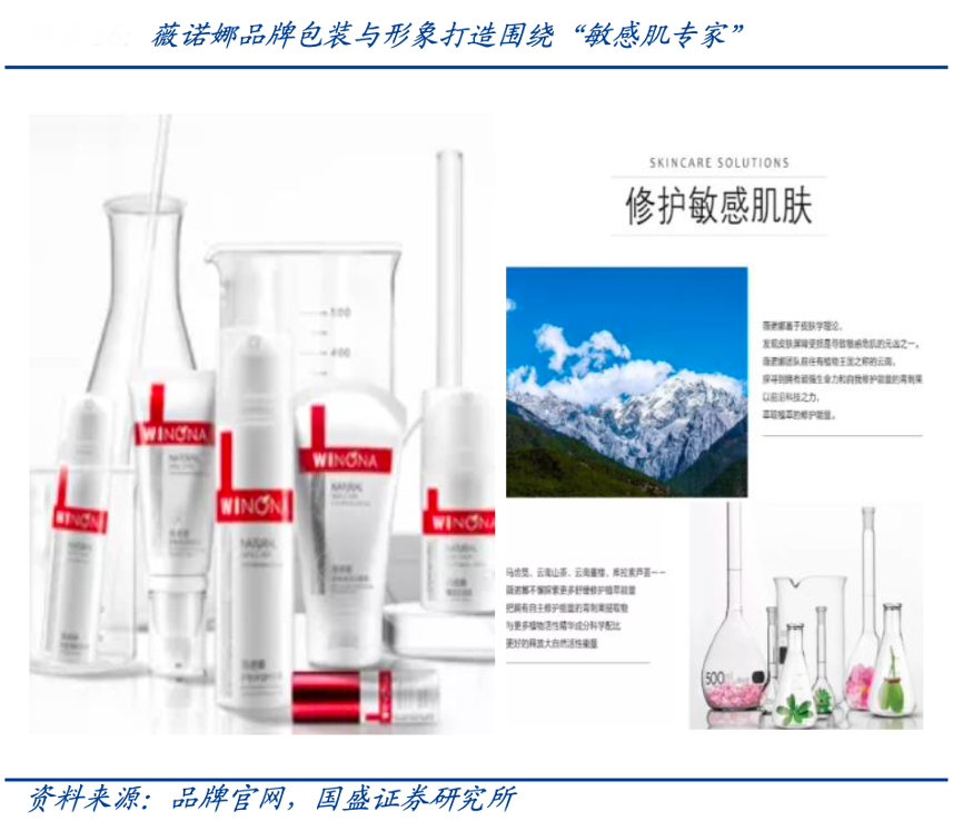 經(jīng)典案例:根據(jù)品牌官網(wǎng)、國盛證券研究所等綜合資訊表明,薇諾娜品牌故事始終圍繞“專注敏感肌膚”概念,從研究成果、產(chǎn)品成分、專利技術(shù)等方面全方 位打造“敏感肌專家”形象。產(chǎn)品包裝方面,自推出起始終采取簡潔的白紅配色,明確傳達(dá)品牌定位于皮膚學(xué)級(jí)功效護(hù)膚的理念。