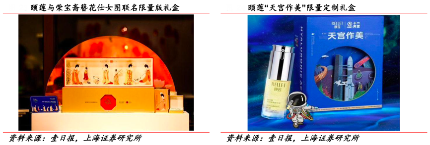 經(jīng)典案例:根據(jù)壹日報、上海證券研究所等綜合資訊表明,頤蓮?fù)ㄟ^ IP 聯(lián)名、KOL種草、直播、短視頻等方式,深挖線上引流資源,進(jìn)行品牌文化傳播,其先后與中國航天、榮寶 齋簪花仕女圖 IP 聯(lián)名,推出新國潮護(hù)膚品。