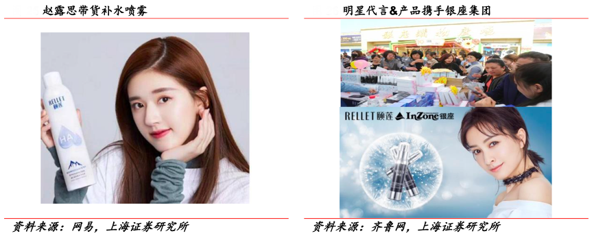 經(jīng)典案例:根據(jù)網(wǎng)易、齊魯網(wǎng)、上海證券研究所等綜合資訊表明,頤蓮攜手銀座集團(tuán),邀請明星代言,賦能營銷新生態(tài)。在 KOL 合作方面,覆蓋多個社 交網(wǎng)絡(luò)平臺的達(dá)人,其中李佳琪直播帶貨助力補(bǔ)水噴霧銷售,趙露思推薦引發(fā)粉絲搶購。
