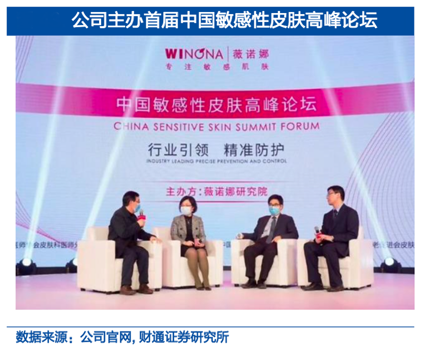 經(jīng)典案例:根據(jù)公司官網(wǎng)、財(cái)通證券研究所等綜合資訊表明,自 2013 年起,薇諾娜公司攜手中國(guó)醫(yī)師協(xié)會(huì),每年舉辦“5.25全民護(hù)膚日”大型公益活動(dòng),期間聯(lián)合行業(yè)協(xié)會(huì)、近 300 家知名合作醫(yī)院共同開(kāi)展全國(guó)性公益義診活動(dòng)。此外,其公司持續(xù)深化其皮膚科權(quán)威度,2020年發(fā)起首屆中國(guó)敏感性皮膚高峰論壇,會(huì)上發(fā)布權(quán)威敏感肌防護(hù)指南獲得業(yè)界廣泛認(rèn)可,成為繼 2019 年第 24 屆世界皮膚科大會(huì)后在敏感肌學(xué)術(shù)領(lǐng)域的新里程碑。