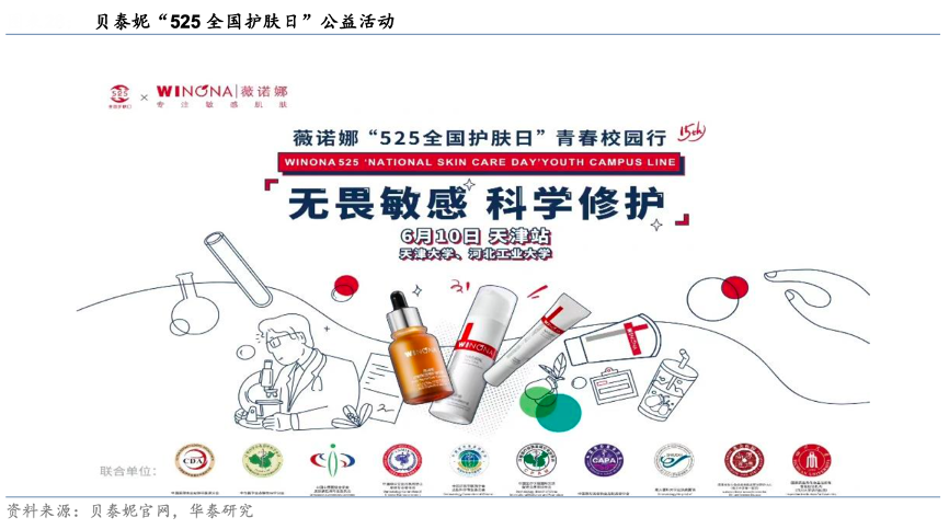 經(jīng)典案例:根據(jù)貝泰妮官網(wǎng)、華泰研究等綜合資訊表明,貝泰妮積累強(qiáng)品牌認(rèn)知度,雙11等促銷季更多自然流量轉(zhuǎn)化。品牌雙 11 和雙 12 購物節(jié)的虹吸效應(yīng)明顯,21 年 Q4 收入達(dá) 19.1 億元,全年占比 47.49%。同時其也抓住38 節(jié)、618 購物節(jié)等時機(jī)進(jìn)行促銷活動。2021年創(chuàng)造性開展“525 全國護(hù)膚日”公益行動,在全國 11 大城市開產(chǎn)20 長聯(lián)合超頭部線下渠道義診活動,引導(dǎo)消費者合理預(yù)期化妝品功效,提高品牌知名度。