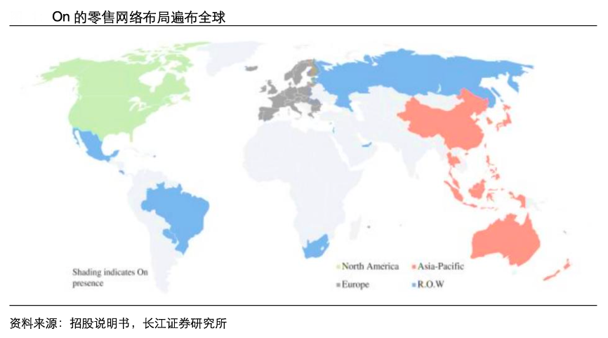 經(jīng)典案例:根據(jù)招股說明書、長江證券研究所等綜合資訊表明,On Running(On/昂跑)是一個(gè)以瑞士工藝和前沿科技、可持續(xù)發(fā)展為基礎(chǔ),致力于為 世界帶來革新性跑步體驗(yàn)的高端運(yùn)動(dòng)品牌,由瑞士職業(yè)運(yùn)動(dòng)員、三屆世界冠軍兼六屆鐵 人三項(xiàng)冠軍 Olivier Bernhard 與兩位好友兼跑步愛好者 Caspar Coppetti 和 David Allemann 于 2010 年 1 月在瑞士蘇黎世一起創(chuàng)立。緩震著陸、強(qiáng)力回彈、輕盈質(zhì)感的設(shè)計(jì)理念始終是 On 的研發(fā)核心,其旗下所有鞋款的鞋底均搭載自有專利科技 CloudTec。截至 2021H1,On 在全球 60 多個(gè)國家擁有 8100 家零售店,其中自營店包括一家紐約旗艦店和四家中國零售店,截至目前中國已開 9 家自營店。