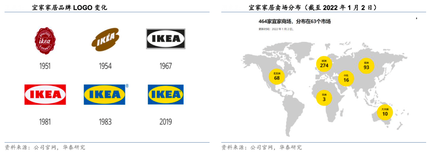 經(jīng)典案例:根據(jù)公司官網(wǎng)、華泰證券等綜合資訊表明,宜家致力于提供品類豐富、高性價比、可持續(xù)發(fā)展的家居用品,品類涵蓋家具、日用品、辦公用品、兒童用品等近萬種SKU,滿足不同消費者一站式家居 場景消費需求;渠道端門店遍布全球,據(jù)官網(wǎng)數(shù)據(jù),截至 22 年 1 月 2 日宜家在全球 63 個 市場中布局有 464 家宜家商場。據(jù)歐睿統(tǒng)計,2020年宜家品牌在全球家具市場市占率達5.2%,位列第一。