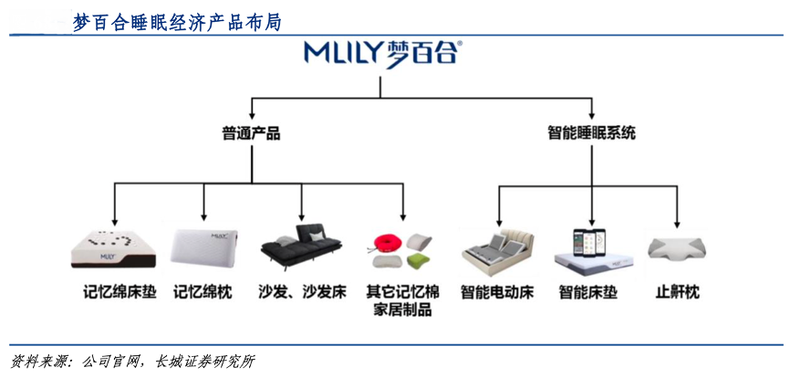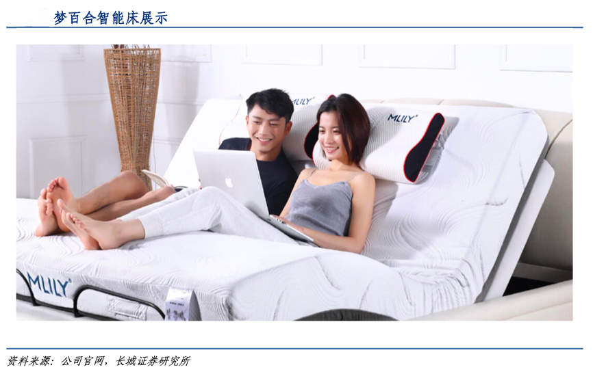 經(jīng)典案例:根據(jù)公司官網(wǎng)、長城證券研究所等綜合資訊表明,由于智能床需要實現(xiàn)姿勢輔助變化的功能,因此只能搭配可以配合變化的記憶棉床墊。通過和記憶棉床墊一起在終端協(xié)同展示,智能床能夠快速導入夢百合的銷售渠道;特別是國內(nèi)的線上渠道,夢百合公司的智能床+床墊的采用低價引流的銷售方式,有望加快睡眠智能化發(fā)展及記憶 棉床墊的推廣。