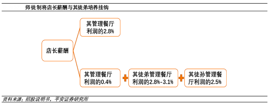 經(jīng)典案例:根據(jù)招股說(shuō)明書、平安證券研究所等綜合資訊表明,海底撈公司采用“師徒制”進(jìn)行人才管理,海底撈的每一位新員工,在進(jìn)入公司后都會(huì)分配一位師傅,優(yōu)秀的徒弟由師父提拔,通過(guò)層層培訓(xùn)和考核最終晉升為店長(zhǎng),“師徒制”促進(jìn)海底撈自下而上裂變式培養(yǎng)人才及門店擴(kuò)張。