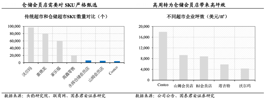 經(jīng)典案例:根據(jù)頭豹研究院、聯(lián)商網(wǎng)、公司公告、國泰君安證券研究等綜合資訊表明,傳統(tǒng)商2-3 萬的 SKU 增加用戶的篩選成本,相互制衡導(dǎo)致相似選項的吸引力明顯降低,倉儲會員店將目標鎖定在特有品牌以提供差異化供給,SKU 控 制在 2000-3000 個,較窄 SKU 有效降低篩選成本。
