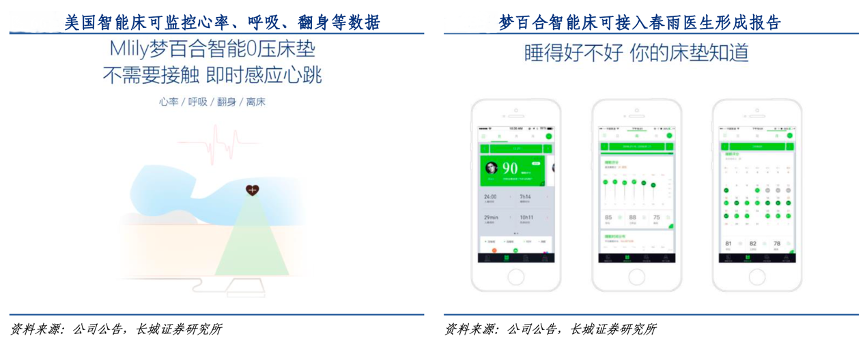 經(jīng)典案例:根據(jù)公司公告、長城證券研究所等綜合資訊表明,夢百合與國內(nèi)知名在線醫(yī)療平臺春雨醫(yī)生合作,一方面通過智能電動床將消費者的睡眠質(zhì)量數(shù)據(jù)化,與春雨醫(yī)生醫(yī)療資源打通,達到精細問診的效果;另一方面,春雨醫(yī)生平臺上的睡眠障礙患者也可導(dǎo)流至夢百合,夢百合客戶群體精準擴大,雙方實現(xiàn)互利共贏。
