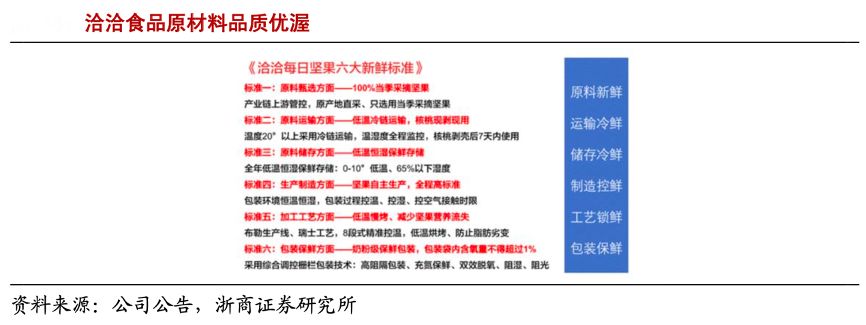 經(jīng)典案例:根據(jù)公司公告、浙商證券研究所等綜合資訊表明,洽洽食品得益于上游端的布局,瓜子能夠以較為合理的價(jià)格獲取優(yōu)質(zhì)原材料,保證產(chǎn)品的香脆度和飽滿度;堅(jiān)果堅(jiān)持全球直采,如選取中國(guó)的核桃、土耳其榛子、澳洲巴旦木等,品質(zhì)優(yōu)渥。