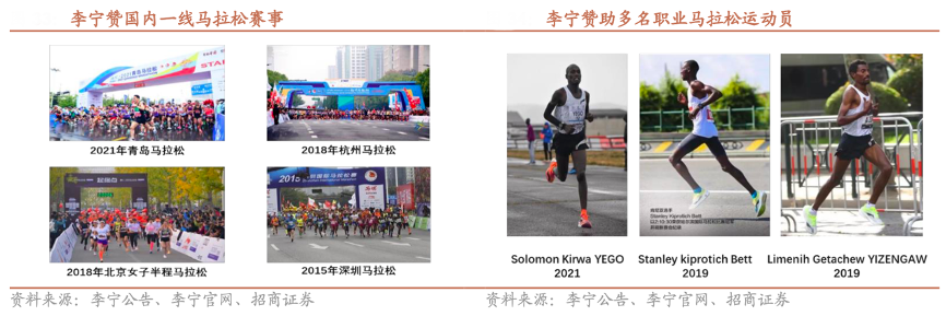 經(jīng)典案例:根據(jù)李寧公告、李寧官網(wǎng)、李寧年報(bào)、招商證券等綜合資訊表明,李寧公司自 2006 年贊助北京馬拉松,建立 irun 跑團(tuán),并于 2012 年創(chuàng)辦李寧 10k 賽事,不斷擴(kuò)大品牌在跑步領(lǐng)域的影響力。2018 年李寧首次贊助杭州馬拉松,標(biāo)志著李寧重回國(guó)內(nèi)一線馬拉松贊助商行列,隨后贊助青島馬拉松、無錫馬拉松;持續(xù)贊助馬拉松運(yùn)動(dòng)員并助力其取得多項(xiàng)賽事獎(jiǎng)牌,李寧利用自身品牌影 響力強(qiáng)的優(yōu)勢(shì),結(jié)合賽事贊助保持產(chǎn)品曝光度和熱度。