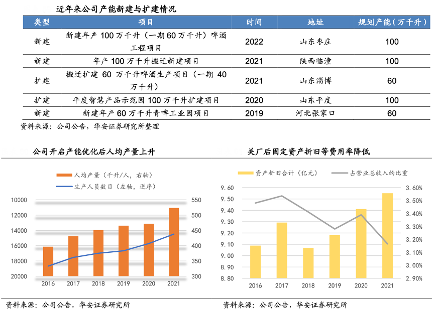 經(jīng)典案例:根據(jù)公司公告、華安證券研究所等綜合資訊表明,青島啤酒2018 年開(kāi)啟關(guān)廠計(jì)劃以來(lái),2019年產(chǎn)能利用率達(dá)到 81.4%,此后受疫情影響略降,2020 和 2021 年均在接近 80%的水平。在關(guān)停部分工廠的同時(shí),公司也新建高效 大廠或?qū)Σ糠之a(chǎn)能進(jìn)行升級(jí),通過(guò)優(yōu)化產(chǎn)能結(jié)構(gòu)和布局來(lái)實(shí)現(xiàn)運(yùn)營(yíng)效率的提升。