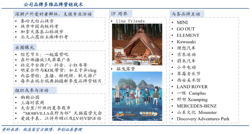 經(jīng)典案例:根據(jù)牧高笛官方微博、華創(chuàng)證券等綜合資訊表明,除帳篷的迭代升級以外,牧高笛公司同時(shí)不斷擴(kuò)展周邊產(chǎn)品,圍繞精致露營,開發(fā)睡眠系統(tǒng)、廚房系統(tǒng)、收納系統(tǒng)、客廳系統(tǒng)的產(chǎn)品矩陣,打造高海拔、精致徒步、精致露營、精致野餐場景矩陣,使牧高笛成為品類齊全的精致露營生活方式品牌。