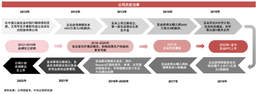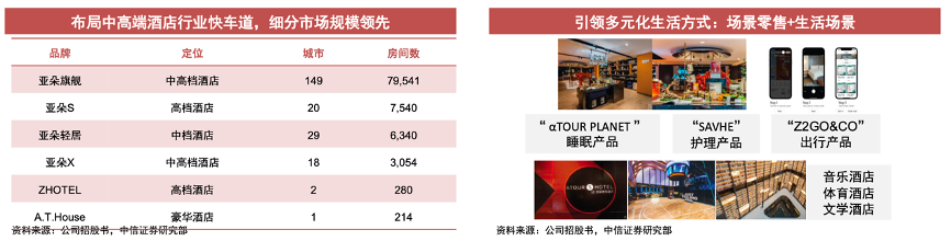 經典案例:根據公司招股書、中信證券研究部等綜合資訊表明,亞朵布局中高端酒店行業(yè)快車道,細分市場規(guī)模領先,同時引領多元化生活方式。