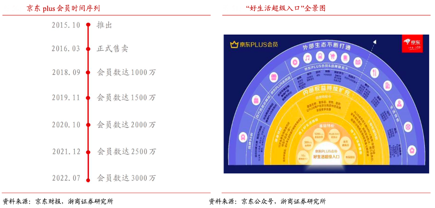 經(jīng)典案例:根據(jù)京東財(cái)報(bào)、京東公眾號(hào)和浙商證券研究所等綜合資訊表明,京東 plus 是國(guó)內(nèi)首個(gè)付費(fèi)電商會(huì)員體系,京東通過(guò)“內(nèi)部權(quán)益持續(xù)擴(kuò)充”和“外部生態(tài)不斷打通”,一方面基于京東內(nèi)部生態(tài)整合京東各業(yè)務(wù)線的消費(fèi)和服務(wù)權(quán)益,另一方面引入外部品牌打造多元“權(quán)益聯(lián)盟”,為用戶提供優(yōu)質(zhì)的消費(fèi)體驗(yàn),提升用戶粘性和活躍度。截至 2022 年 7 月,京東 PLUS 會(huì)員 數(shù)量突破 3000 萬(wàn),平均年消費(fèi)額超過(guò)非 PLUS 會(huì)員的 8 倍。