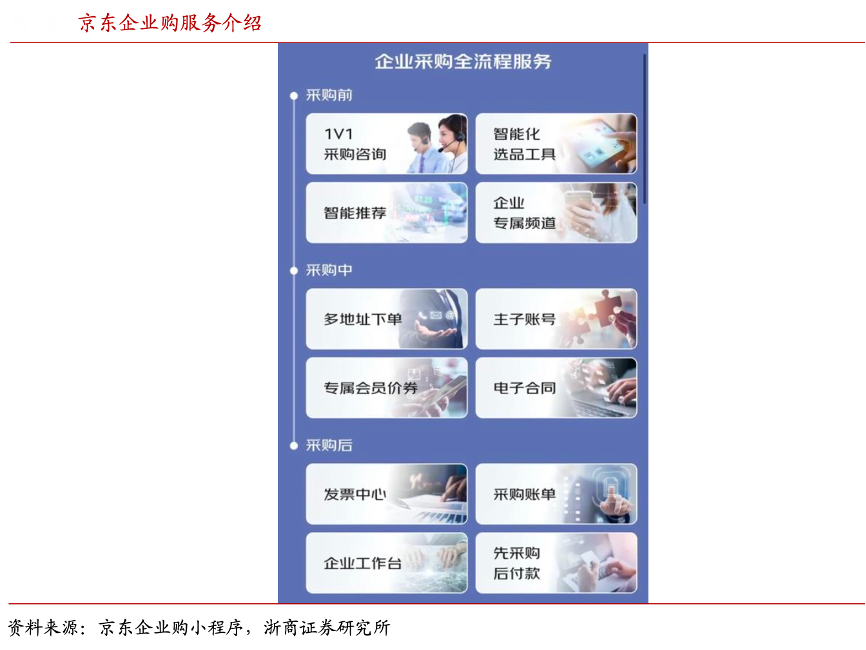 經(jīng)典案例:根據(jù)京東企業(yè)購(gòu)小程序、浙商證券研究所等綜合資訊表明,對(duì)于中小企業(yè)而言,京東企業(yè)購(gòu)圍繞企業(yè)采購(gòu)鏈條上的八大觸點(diǎn),在選品/議價(jià)/簽約直至報(bào)銷、采購(gòu)決策等服務(wù)流程中實(shí)現(xiàn)增效,從源頭為企業(yè)會(huì)員節(jié)省采購(gòu)成本;據(jù)京東企業(yè)購(gòu)微信小程序顯示,京東企業(yè)會(huì)員年均綜合降本可超過(guò)45%。