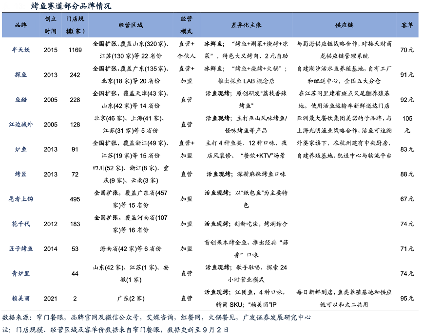 經(jīng)典案例:根據(jù)窄門餐眼、品牌官網(wǎng)及微信公眾號(hào)、艾媒咨詢、紅餐網(wǎng)、火鍋餐見、廣發(fā)證券發(fā)展研究中心等綜合資訊表明,烤魚品牌主要在產(chǎn)品、營(yíng)銷、品牌、 場(chǎng)景等多方面進(jìn)行創(chuàng)新,如探魚創(chuàng)新“烤魚+燒烤+火鍋”模式,爐魚以夜店風(fēng)裝修、“餐飲+KTV”模式等引流年輕消費(fèi)者,江邊城外主打巫山風(fēng)味烤魚/怪味烤魚產(chǎn)品。