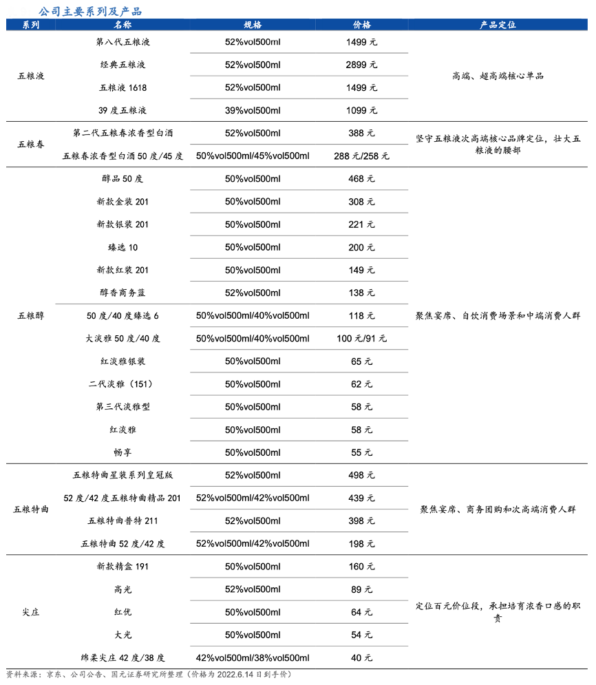 經(jīng)典案例:根據(jù)京東、公司公告、國(guó)元證券研究所等綜合資訊表明,五糧液的產(chǎn)品系列及產(chǎn)品定位各有場(chǎng)景,價(jià)值突出。