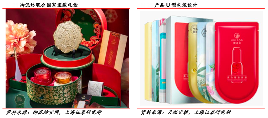經(jīng)典案例:根據(jù)御泥坊官網(wǎng)、天貓官旗、上海證券研究所等綜合資訊表明,御泥坊基于傳承盛唐文化的民族護(hù)膚品牌的品牌定位,從盛唐文化中提煉出飛天祥云、飛天披帛、仕女妝容等元素,并以詩詞春江花月夜為靈感,基于東方女性膚質(zhì)特點(diǎn),研究盛唐古法,精選名貴原材,結(jié)合現(xiàn)代科技,推出全新春江花月夜系列產(chǎn)品。另外,御泥坊面膜采用 U 型獨(dú)特的包裝設(shè)計(jì),不僅能夠?qū)⒕A集中,也增強(qiáng)了品牌辨識(shí)度和對(duì)年輕消費(fèi)者吸引力。