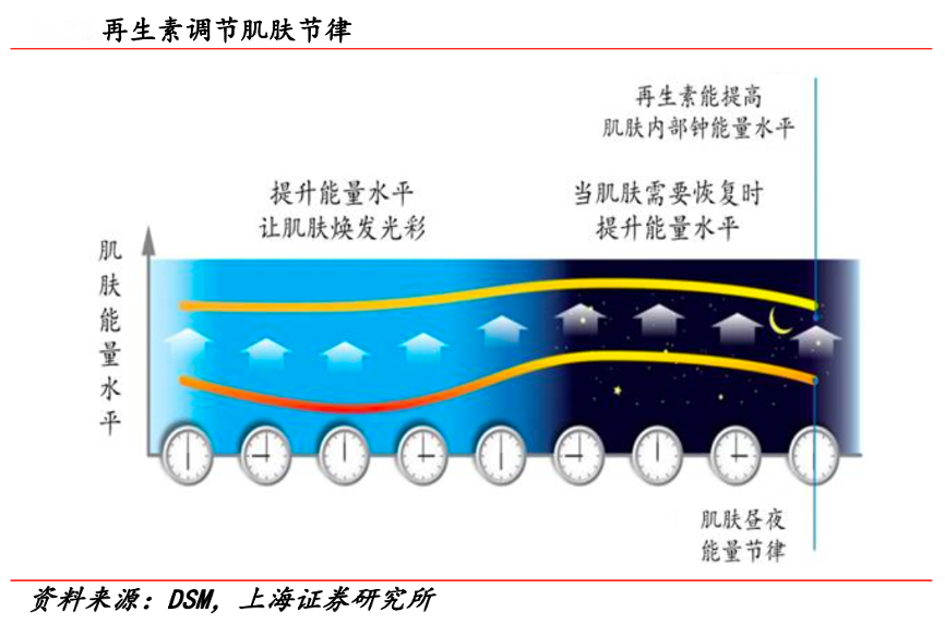 經(jīng)典案例:根據(jù)DSM、上海證券研究所等綜合資訊表明,大水滴公司根據(jù) 2017 年諾貝爾獎成果晝夜節(jié)律分子調(diào)節(jié)機制,開發(fā)出專利 Clock-f,能夠從皮膚 ATP 源頭調(diào)節(jié)皮膚生物節(jié)律。