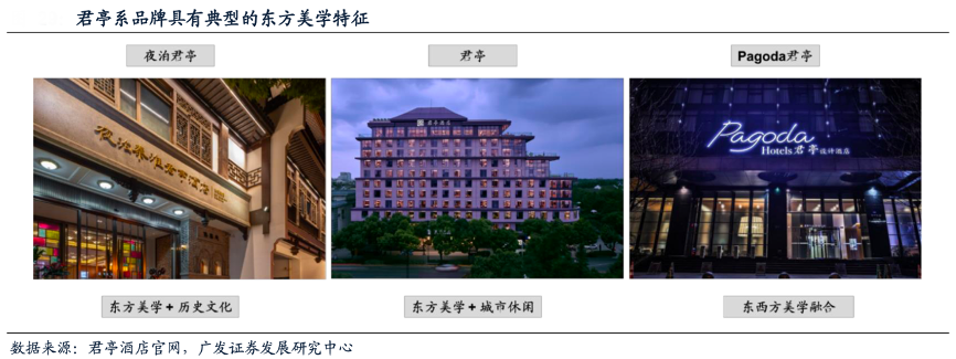 經(jīng)典案例:根據(jù)君亭酒店官網(wǎng)、廣發(fā)證券發(fā)展研究中心等綜合資訊表明,君亭系酒店品牌具有典型的東方美學(xué)文化特征,定位始終圍繞著“聚焦寫意東方,沉浸都市謐園”的核心主線,由此衍生出三大酒店品牌— —君亭、夜泊君亭、Pagoda君亭。其中,“君亭”結(jié)合城市休閑和東方文化特色;“夜泊君亭”以城市歷史文化為基石,創(chuàng)作具有鮮明文化特征的酒店建筑;“Pagoda君亭”融合東西方美學(xué),兼具國(guó)際品質(zhì)基因和中國(guó)城市文化。