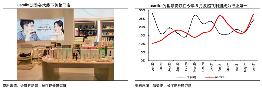 經(jīng)典案例:根據(jù)金融界新聞、淘數(shù)據(jù)、長江證券研究所等綜合資訊表明,截至 2021 年 5 月,usmile 共進(jìn)駐超過5000 家線下門店,如屈臣氏、伊藤洋華堂、銀泰西選、三亞免 稅等中高端渠道,其中很多門店是被 usmile 追求極致清潔的專業(yè)產(chǎn)品所打動,首次引進(jìn)口腔護(hù)理品類的產(chǎn)品。