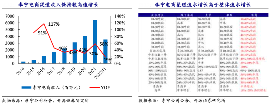 經(jīng)典案例:根據(jù)李寧公司公告、開源證券研究所等綜合資訊表明,李寧建立大電商業(yè)務(wù)戰(zhàn)略,電商業(yè)務(wù)逐漸形成“精準(zhǔn)人群觸達(dá)、內(nèi)容教育、引流進(jìn)店、消費(fèi)者評(píng)價(jià)反饋”的模式閉環(huán),電商渠道收入和流水一直保持高質(zhì)量增長。通過強(qiáng)化會(huì)員招募、內(nèi)容原創(chuàng)、精準(zhǔn)營銷和向門店引流變現(xiàn),2021年會(huì)員銷售貢獻(xiàn) 提升10%-20%低段,2022H1會(huì)員銷售貢獻(xiàn)提升高單位數(shù),截至 2021 年底全渠道 O2O 跨店?duì)I業(yè)額增長70~80%高段。