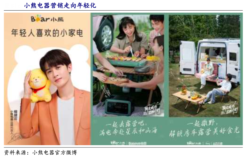 經(jīng)典案例:根據(jù)小熊電器官方微博、開(kāi)源證券研究所等綜合資訊表明,小熊電器品牌定位升級(jí)同期,小熊電器官宣檀健次作為品牌代言人,檀健次作為新生代當(dāng)紅藝人,其熒幕形象與小熊電器的全新品牌、產(chǎn)品 定位相契合。線上方面,小熊電器聯(lián)合小紅書(shū)等眾多社交平臺(tái)進(jìn)行種草營(yíng)銷(xiāo),618 活動(dòng)期間小熊電器全網(wǎng)曝光量超 5.9 億,實(shí)現(xiàn)品牌聲量與產(chǎn)品銷(xiāo)量的雙增長(zhǎng)。