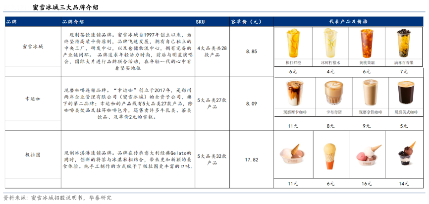 經(jīng)典案例:根據(jù)蜜雪冰城招股說明書、華泰研究等綜合資訊表明,蜜雪冰城現(xiàn)擁有三大現(xiàn)制飲品品牌——現(xiàn)制茶飲“蜜雪冰城”、現(xiàn)磨咖啡“幸運咖”和現(xiàn)制冰淇淋連鎖品牌“極拉圖”。 據(jù)公司官網(wǎng)及窄門餐眼,蜜雪冰城目前有 4 大品類共 28 款產(chǎn)品,客單價為 8.85 元;幸運 咖主打現(xiàn)磨咖啡,共擁有 5 大品類 27 款產(chǎn)品,客單價 8.09 元;極拉圖共 3 大品類,主打手工冰激凌系列,客單價 17.82 元。其中,主力品牌蜜雪冰城產(chǎn)品價格帶集中在 6-8 元區(qū)間,憑借性價比定位在消費者心中形成了較高的品牌認知。