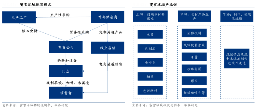 經典案例:根據蜜雪冰城招股說明書、華泰研究等綜合資訊表明,蜜雪冰城公司把握核心原料供應,自建原料生產工廠,生產性采購占比不斷提升,自產能力不斷加強。同時,公司自建倉儲物流體系,22 個地區(qū)大倉儲中心覆蓋全國所有門店。