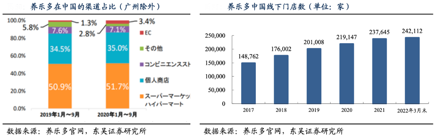 經(jīng)典案例:根據(jù)養(yǎng)樂多官網(wǎng)、東吳證券研究所等綜合資訊表明,以養(yǎng)樂多為例,2020 年 1-9 月養(yǎng)樂多在中國的超市、個人商店、便利店的渠道占比超 90%;截至 2022 年 3 月末,線下網(wǎng)點布局超 24 萬家門店。線下渠道為低溫乳品的銷售基礎(chǔ),同時線上渠道成為品牌營銷的重要陣地。