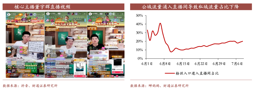 經(jīng)典案例:根據(jù)抖音、蟬媽媽、財通證券研究所等綜合資訊表明,從階段來看,自 2021 年 12 月東方甄選成立后,東方甄選一直保持較低速的粉絲增長及關注度,而直播間的優(yōu)質(zhì)內(nèi)容被進行多次二創(chuàng),董宇輝的直播切片增加,借助抖音的推薦機制快速傳播,在 6 月 10 日前后實現(xiàn)快速破圈。