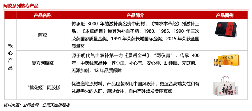 經典案例:根據公司官網、公司天貓旗艦店、星展證券等綜合資訊表明,東阿阿膠公司主要從事阿膠及阿膠系列產品的研發(fā)、生產和銷售,是阿膠行業(yè)標準制定的引導者,是中式滋補健康引領者和中藥企業(yè)高質量發(fā)展的典范。阿膠系列的核心產品包括:阿膠、復方阿膠漿、“桃花姬”阿膠糕等。