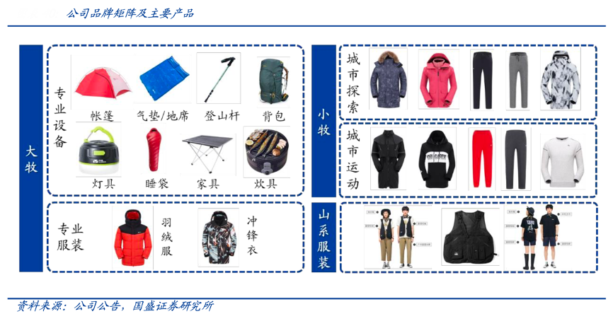 經(jīng)典案例:根據(jù)公司公告、國盛證券研究所等綜合資訊表明,牧高笛形成了以“大牧”(Mobi Garden)為主品牌,“小牧”(Mobi Garden Urban)與“山系服裝”(MOBI VILLA)為子品牌的品牌矩,并明確品牌風(fēng)格和對標(biāo)客戶,即“大牧”品牌主要提供戶外專業(yè)裝備及服裝,“小牧”品牌主要提供多場景穿著。