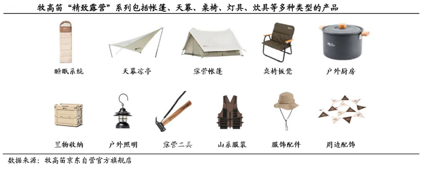 經(jīng)典案例:根據(jù)牧高笛京東自營官方旗艦店、國泰君安證券研究等綜合資訊表明,牧高笛公司秉持“產(chǎn) 品+場景”的設計理念,逐步打造“精致露營”、“精致野餐”、“精致徒步”產(chǎn)品線,產(chǎn)品在具備專業(yè)性能的基礎上,兼具實用性和體驗感,可滿足露營消費者戶外出行的多樣化需求。