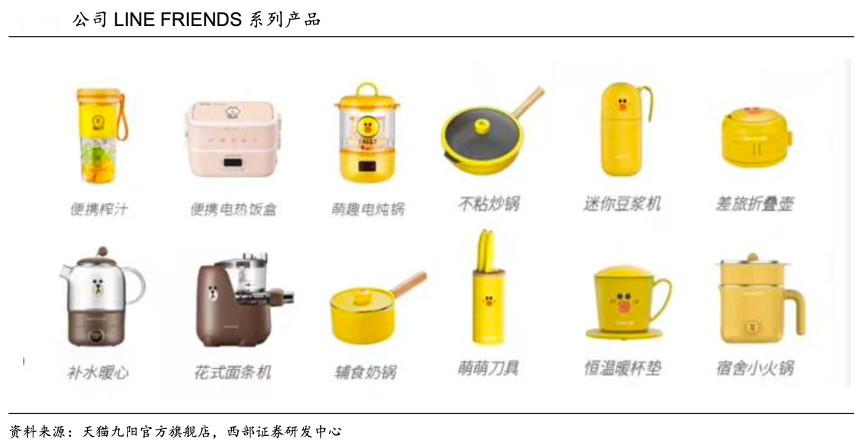 經(jīng)典案例:根據(jù)天貓九陽官方旗艦店、西部證券研發(fā)中心等綜合資訊表明,2018年九陽公司向高端系列進(jìn)軍,重點推出 SKY 系列創(chuàng)新產(chǎn)品,主要以 S 系列無涂層蒸汽飯煲、K系列不用手洗破壁豆?jié){機(jī)、Y系列免手洗破壁機(jī)為代表。該系列主打“免手洗”、“低噪音”、“蒸汽除菌”、“低糖”等可選功能,注重用戶使用體驗,通過增添附加功能構(gòu)筑產(chǎn)品差異化優(yōu)勢,帶動價格提升。 SKY 系列產(chǎn)品價格普遍高于 1500 元,促進(jìn)了品牌的高端化轉(zhuǎn)型。