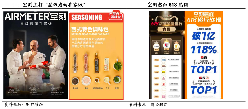 經(jīng)典案例:根據(jù)財(cái)經(jīng)移動、國海證券研究所等綜合資訊表明,空刻意面成立于 2019 年,它在國內(nèi)率先提出了“速食意面”的概念,以“星級意面在家做”為品牌定位。進(jìn)入2022年,618大促期間全渠道銷售額破億,不僅在天貓、抖音雙平臺登 頂方便速食榜單 TOP 1,而且躋身抖音糧油副食大類目品牌榜單 TOP1 和天貓食品大類目榜單TOP10。