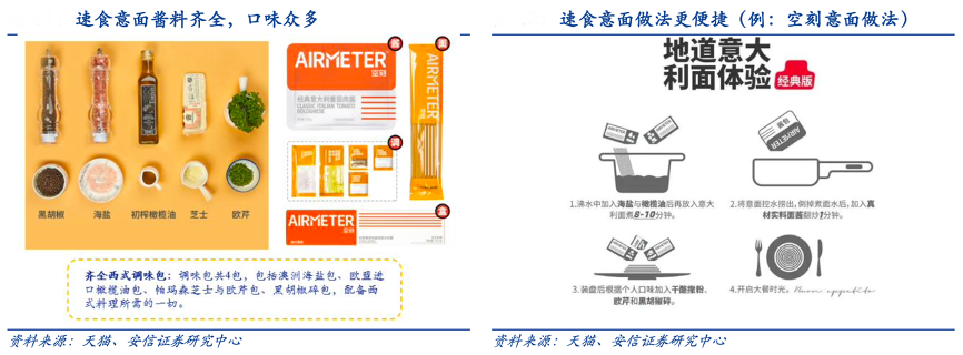 經(jīng)典案例:根據(jù)天貓、安信證券研究中心等綜合資訊表明,一般自己做意面方法需要的原料眾多,相對速食意面較為繁雜,而速食意面有效解決了烹 飪的諸多過程,同時提供豐富多樣的口味,讓消費者在家也能做出餐廳級意面,受眾人群更廣。