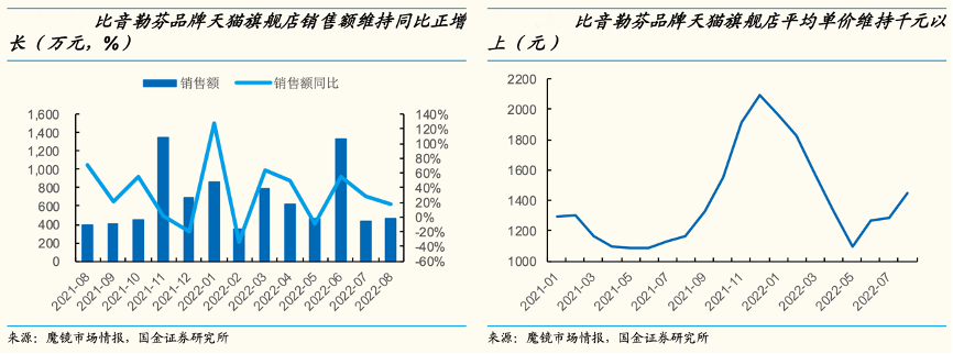 經(jīng)典案例:根據(jù)魔鏡市場情報、國金證券研究所等綜合資訊表明,比音勒芬公司積極布局數(shù)字化新零售渠道,2022 年 6-8 月旗艦店銷售額分別實現(xiàn) 55%/29%/17%的同比增長,在品牌服飾增速保持領(lǐng)先。除在天貓、京東、唯品會開設(shè)旗艦店外,其還通過直播帶貨、小紅書種草、抖音、微信小程序等方式,發(fā)揮高黏性客群和高復購率的品牌優(yōu)勢,通過線上線下融合,形成全渠道布局。