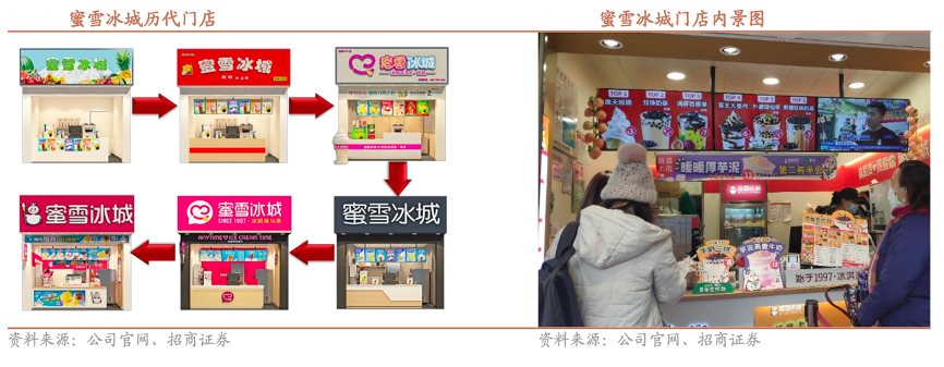 經(jīng)典案例:根據(jù)公司官網(wǎng)、招商證券等綜合資訊表明,2018年,蜜雪冰城第六代門店采用飽和度高的艷色、大而浮夸的字體、高密度的海報(bào)和廣告牌對(duì)消費(fèi)者形成視覺沖擊,強(qiáng)化了品牌形象,奠定了品牌調(diào)性。自創(chuàng) IP“雪王”旨在打造品牌超級(jí)符號(hào),白胖的身子和紅彤彤的背景是標(biāo)志性的“雪王”LOGO,設(shè)計(jì)色彩鮮艷較抓眼球,塑造品牌力,占領(lǐng)消費(fèi)者記憶心智。