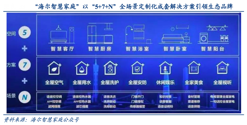 經(jīng)典案例:根據(jù)海爾智慧家庭公眾號、華創(chuàng)證券等綜合資訊表明,卡薩帝積極推動高端套系產(chǎn)品融入三翼鳥家居生態(tài)戰(zhàn)略,涵蓋智慧客廳、智慧廚房、智慧臥室等 5 大生活場景,并配合用電用水等7大全屋解決方案,對N個生活場景個性化運用。例如廚房場景中卡薩帝冰箱除了能讓食材控氧保鮮外,還能通過分析食材數(shù)據(jù)推薦菜單,而根據(jù)菜譜灶具可以智能控火,無需人為照看。