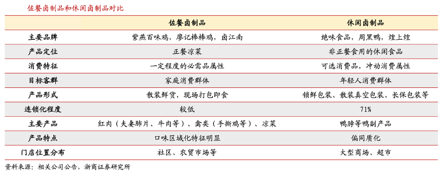 經(jīng)典案例:根據(jù)相關公司公告、浙商證券研究所等綜合資訊表明,佐餐鹵制食品主要指在家庭以及餐廳、酒店等餐桌消費場景食用的食品,休閑鹵制食品主要是指在閑暇時享用的鴨脖、鴨爪等鹵制食品,即在正餐之間、社交以及體育活動等場景作為零食享用的食品。因產(chǎn)品屬性、消費客群及消費場景的差異,兩種鹵味生意在選址時各有側(cè)重。