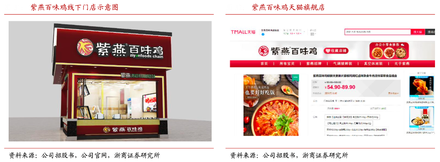經(jīng)典案例:根據(jù)公司招股書、公司官網(wǎng)、浙商證券研究所等綜合資訊表明,紫燕百味雞經(jīng)過幾十年的積累,已經(jīng)建立了覆蓋線上和線下的深度銷售網(wǎng)絡(luò)。線下門店超 6000 家,較多布局在社區(qū)和農(nóng)貿(mào)市場,線上渠道拓展方面,公司在主要電商平臺淘寶、京東等開設(shè)自營旗艦店,在抖音平臺探索直播帶貨。
