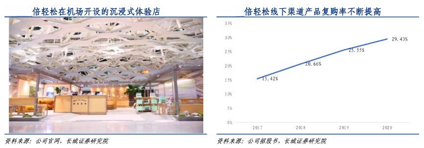 經(jīng)典案例:根據(jù)公司官網(wǎng)、公司招股書、長(zhǎng)城證券研究院等綜合資訊表明,多年來,倍輕松公司試圖將直營(yíng)門店打造成用戶在繁忙的都市生活中的一個(gè)療愈間,能夠?yàn)槟贻p白領(lǐng)提供按摩服務(wù),還會(huì)提供茶水、點(diǎn)心等附加服務(wù)。并且有的機(jī)場(chǎng)門店還會(huì)以旅途卡等方式吸引消費(fèi)者進(jìn)店免費(fèi)體驗(yàn),同時(shí)還能享受免費(fèi)的線下店員普及健康的知識(shí)宣導(dǎo)等咨詢服務(wù)。2017 至 2020 年的短短三年間,公司的復(fù)購率提升近 14 個(gè)百分點(diǎn)。