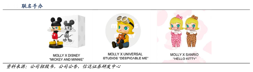 經(jīng)典案例:根據(jù)公司招股書、公司公告、信達證券研發(fā)中心等綜合資訊表明,泡泡瑪特與知名 IP 推出聯(lián)名手辦,延長 IP 生命周期,公司積極尋求 IP 跨界合作的機會,得以覆蓋更加廣泛的粉絲群。Molly 曾與 The Monsters、Despicable Me 和 Hello Kitty 等世界知名 IP 聯(lián)名推出手辦產(chǎn)品。粉絲群的不斷拓張令 IP 生命周期得以延長。