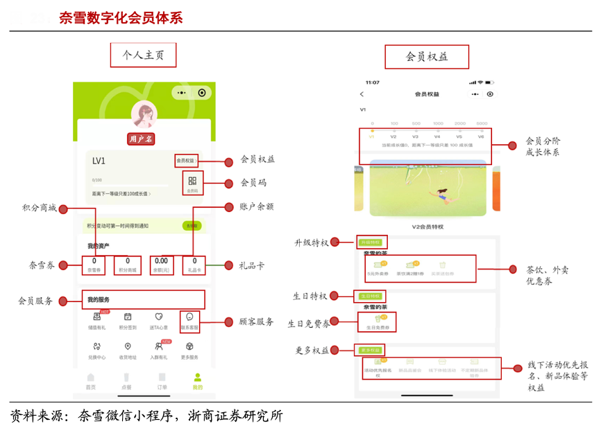 經(jīng)典案例:根據(jù)奈雪的茶微信小程序、浙商證券研究所等綜合資訊表明,截至2021年6月30日,奈雪注冊會員數(shù)量達到約 36.5 百萬名,21Q3 活躍會員總數(shù)達到約 7.4 百萬名,活躍會員復(fù)購率約 30.3%。奈雪數(shù)字化會員體系運營成效顯著。此外,公司正積極收集線上訂單數(shù)據(jù)和用戶反饋,進一步優(yōu)化自身產(chǎn)品和服務(wù)。