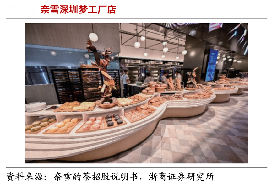 經(jīng)典案例:根據(jù)奈雪的茶招股說明書、浙商證券研究所等綜合資訊表明,2019 年 11 月,奈雪的茶公司在深圳推出奈雪夢工廠,其面積超過 700 平方米,整個空間由五個區(qū)域無縫對接,提供現(xiàn)制茶飲、烘焙產(chǎn)品、酒精飲料、即飲茶飲及零售等產(chǎn)品,并配有娃娃機及其他流行游戲設(shè)備的零售禮品店。據(jù)新浪財經(jīng),夢工廠與常規(guī)門店最大區(qū)別在于,夢工廠集來自世界各地的烘焙師、茶飲師、咖啡師、精釀師組成研 發(fā)團隊,新品直接在店內(nèi)做銷售測試,冠軍產(chǎn)品將直接推向奈雪的其他門店。