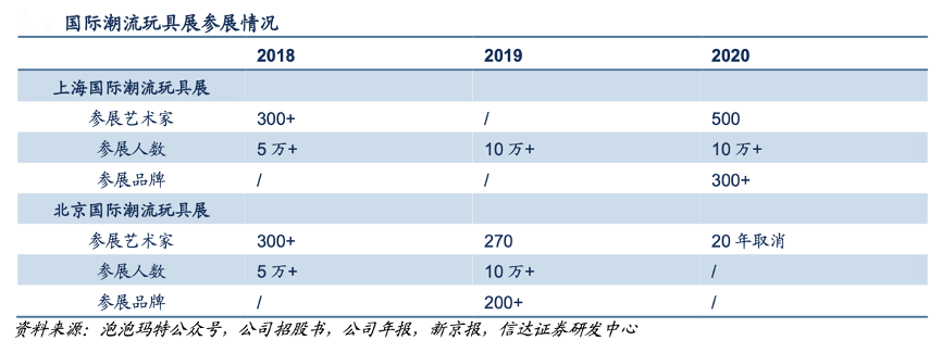 經(jīng)典案例:根據(jù)泡泡瑪特公眾號、公司招股書、公司年報、新京報、信達證券研發(fā)中心等綜合資訊表明,泡泡瑪特公司每年于北京、上海定期舉辦兩次國際潮流玩具展 (PTS),邀請數(shù)百名藝術(shù)家?guī)頂?shù)百款作品與粉絲見面,按參觀人 次計,北京國際潮玩展和上海國際潮玩展已成為中國最大的潮流玩具展,有助于公司吸引更多優(yōu)質(zhì)人才。2020年上海國際潮流玩具展吸引了 500 名藝術(shù)家參展,參展品牌突破 300 個, 參展人次超過 10 萬。